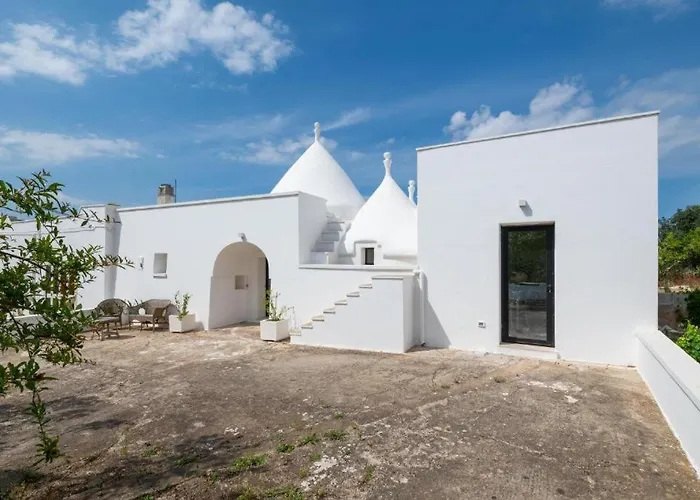 Willa Il Trullo Bianco Molillo Ostuni dysponuje patiami z widokiem na ogród, 45 min jazdy od lotniska Brindisi Papola Casale.